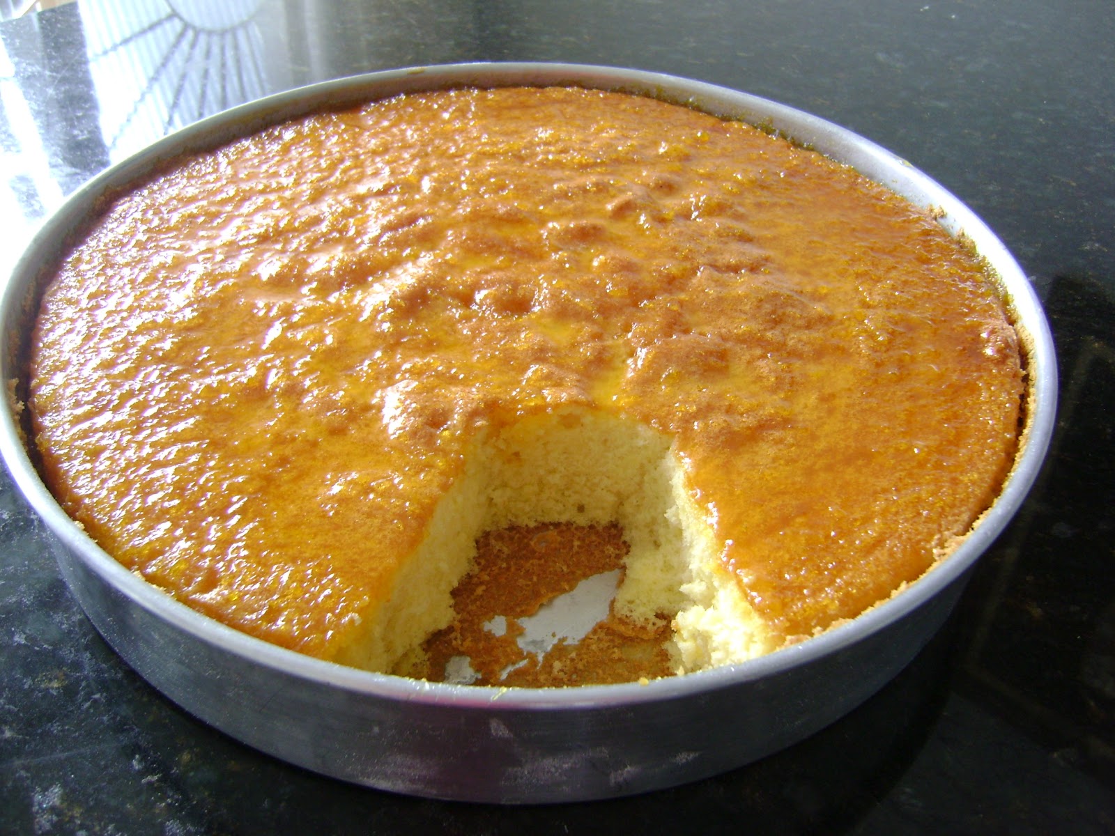 Bater as claras em neve e reserve .Na batedeira coloque as gemas, óleo, e açucar e bater por dois minutos. Adicione neste creme a farinha de trigo, o suco de laranja, essência e bater novamente.Adicione por ultimo o fermento em pó.Coloque as claras em neve e misture delicadamente (manualmente) até misturar a massa.Assar em forno pré aquecido 230 graus, durante 25 minutos, observe ate dourar a parte de cima do bolo.